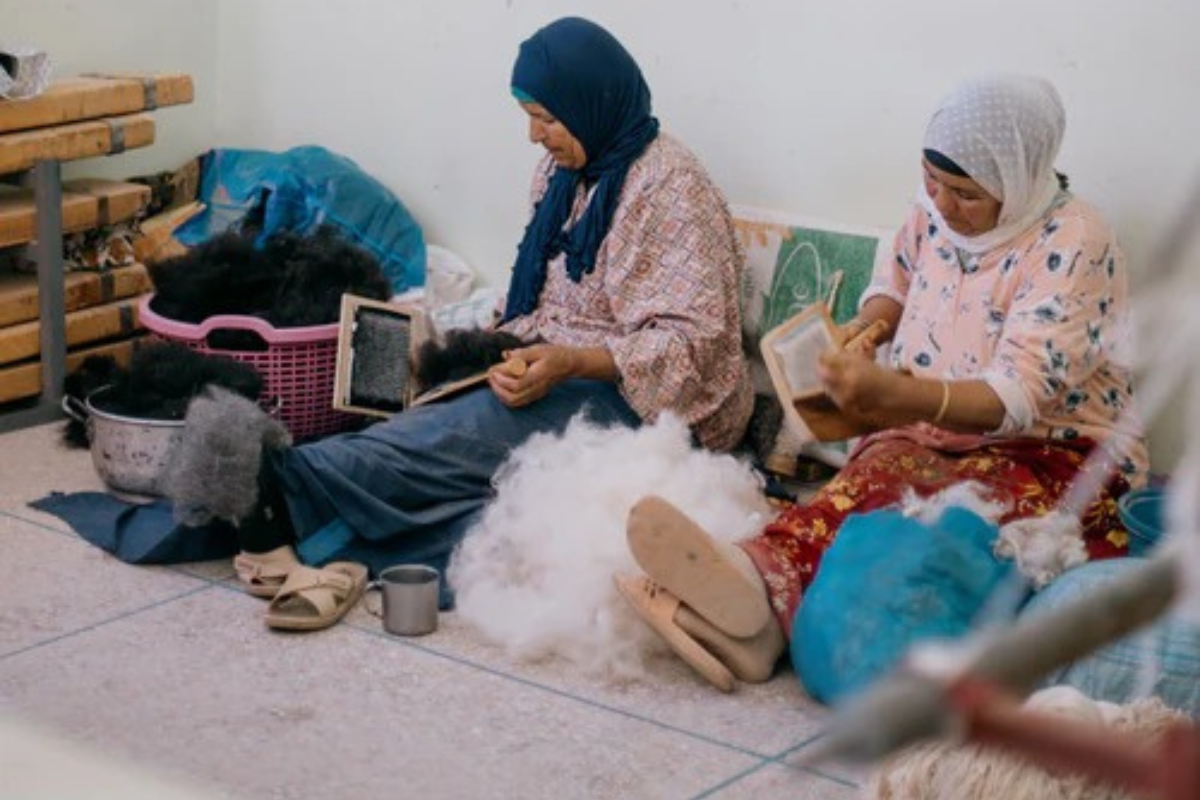 À l’inverse, certains tapis sont produits à l’aide de machines industrielles. Même s’ils sont parfois présentés comme “inspirés de l’art berbère”, leur fabrication est standardisée, rapide et automatisée, ce qui réduit considérablement les coûts de production.