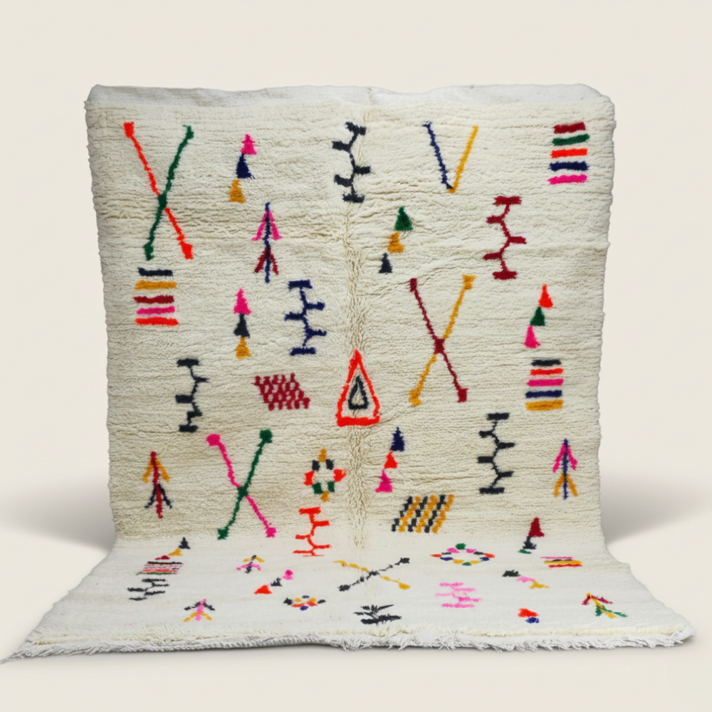 Votre tapis Azilal est une œuvre d’art vivante tissée par nos artisanes dans le Haut Atlas. Chaque motif est une improvisation spirituelle, faisant de votre tapis une pièce strictement unique qu'aucun autre foyer ne possédera.